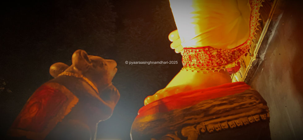 Shot from below, the golden hem of Ganesha’s robe glows like molten sunlight as His vahana, the humble Mushak, gazes upward in eternal devotion. The night sky fades into shadow while the light frames this sacred bond — a moment of myth seen from a worshipper’s eyes.